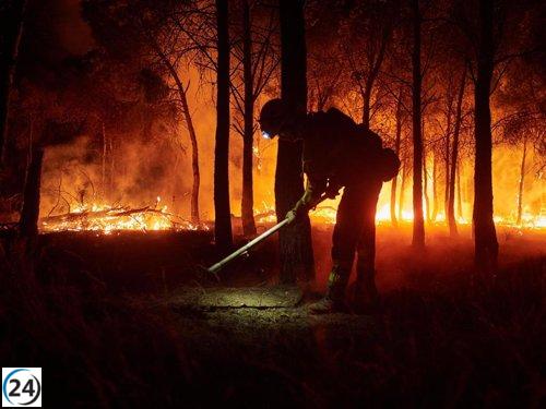 Bomberos navarros siguen combatiendo incendio en León.