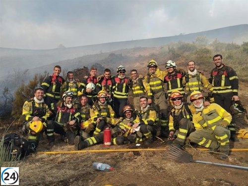 Bomberos navarros refuerzan la lucha contra incendios en León.