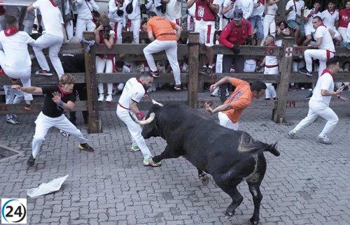 Cebada Gago enfrenta un riesgo en San Fermín por un toro suelto en Estafeta.